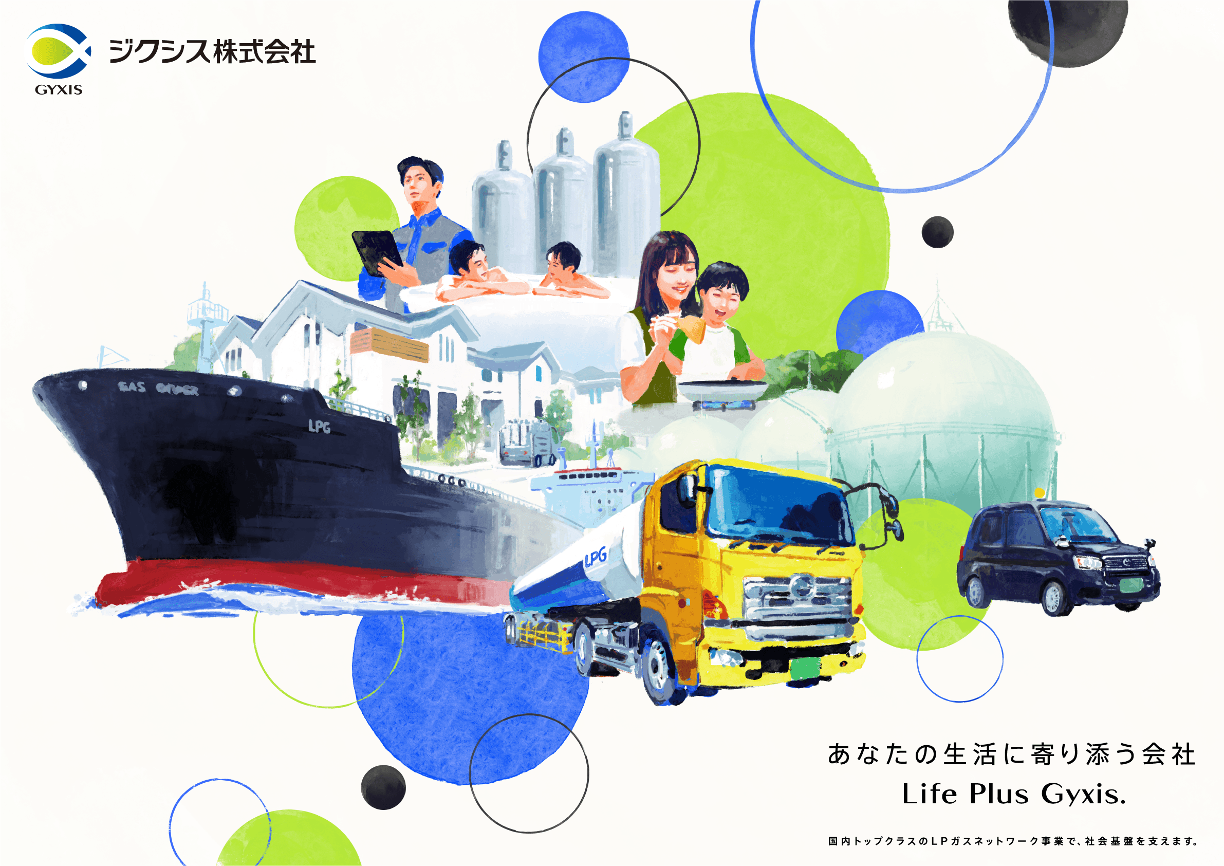 2025年4月、設立10周年に合わせ、カンパニー・タグライン「あなたの生活に寄り添う会社 Life Plus Gyxis.」 を制定しました。カンパニー・タグラインは、全社員が参加したプロジェクトにおいて「ジクシスらしさ」や「ありたい姿」を追求し、誕生しました。「Life Plus Gyxis.」は、ジクシスの基盤商材である「LPG」が頭文字になっています。